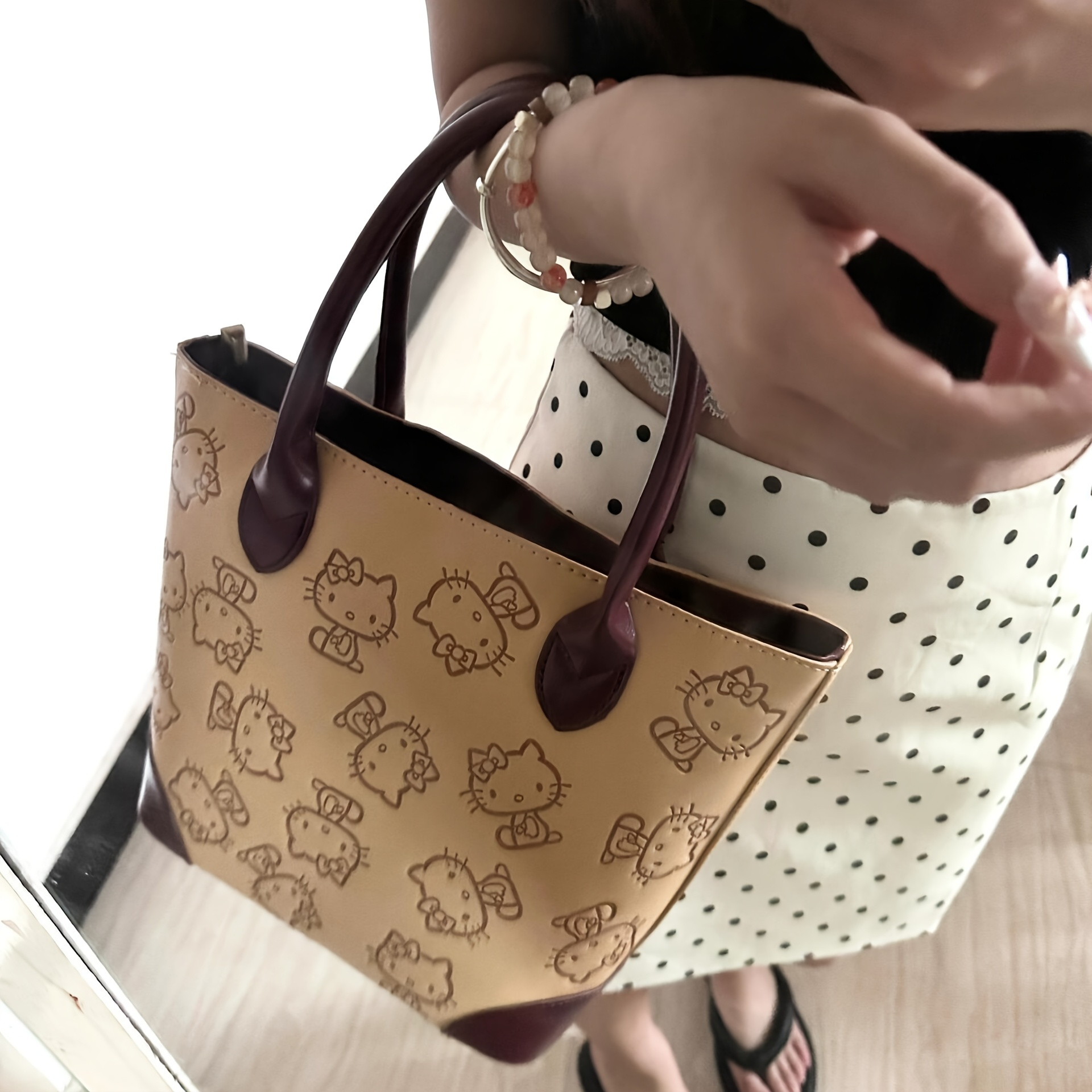 Women's Retro Hello Kitty Handbag - Cute Heart & Bow Print
